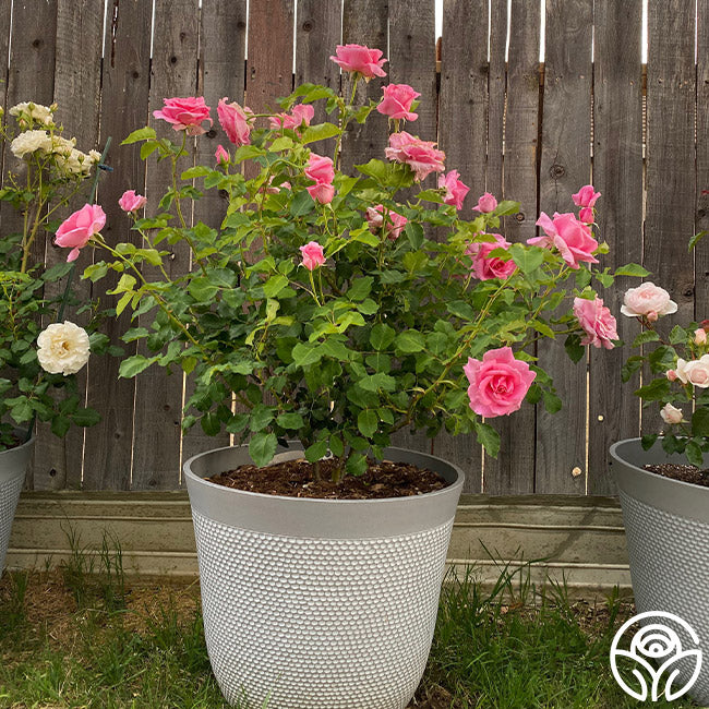 A perfect, pink Hybrid Tea, Bewitched will cast a spell on you with her urn-shaped buds that unfurl into large, 5", double, perfect, pearl-pink flowers. Bewitched has a strong damask fragrance, shiny, green foliage, and long stems for an ideal cut rose. Her color and scent are at their best in cooler temperatures. Add this vigorous, continually blooming rose to your garden and be entranced by her beauty from the start!