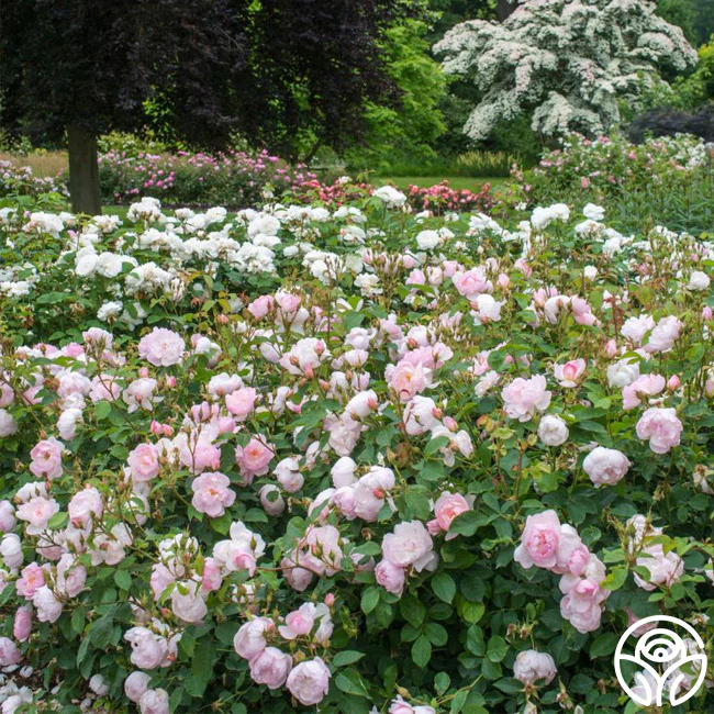 Modest in size and form, this lovely and reliable repeat blooming rose opens from round buds to form a 2 1/2" ball (petals 20) which is perfectly cupped hiding golden stamens in the center. The petals pale from soft pink to blush. Named for the English folk song made famous by Simon and Garfunkel.